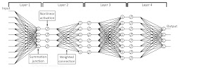 To appreciate the difficulty involved in designing a neural network, consider this: The neural network shown in Figure 1 can be used to associate an input consisting of 10 numbers with one of 4 decisions or predictions. For example, the neural network shown may be used by a bank to determine if credit should be extended to a customer. In this case, the 10 input numbers represent various parameters relevant to an individual's financial responsibility such as balance in savings accounts, outstanding loan amounts, number of years of employment, and so on. The neural network takes in these 10 numbers, performs calculations and produces an output consisting of 4 numbers. Depending on the position at which the maximum of these 4 numbers appears in the output, the prediction could be one of the following: